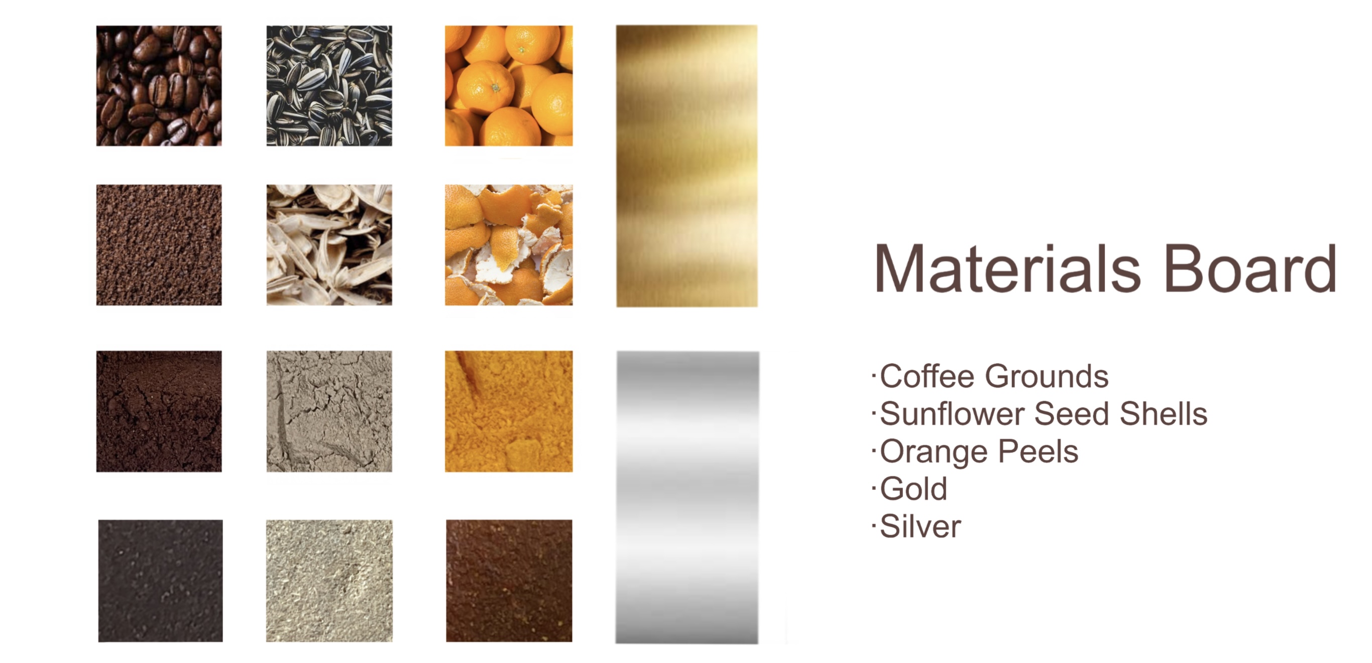 A key concept within Borosouro is replaceable components made from organic materials such as sunflower seeds, coffee grounds, orange peels, and binding agents. Combining these with exclusively recycled metals, we expect our pieces to be viewed as modern heirlooms, designed to be passed down through generations.