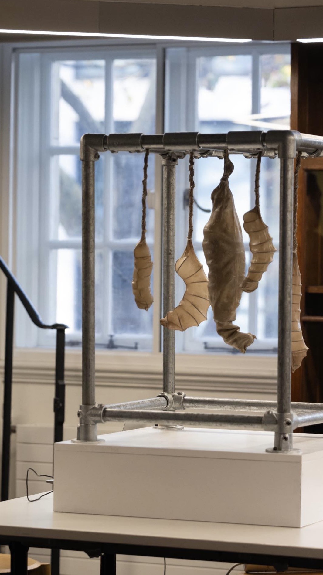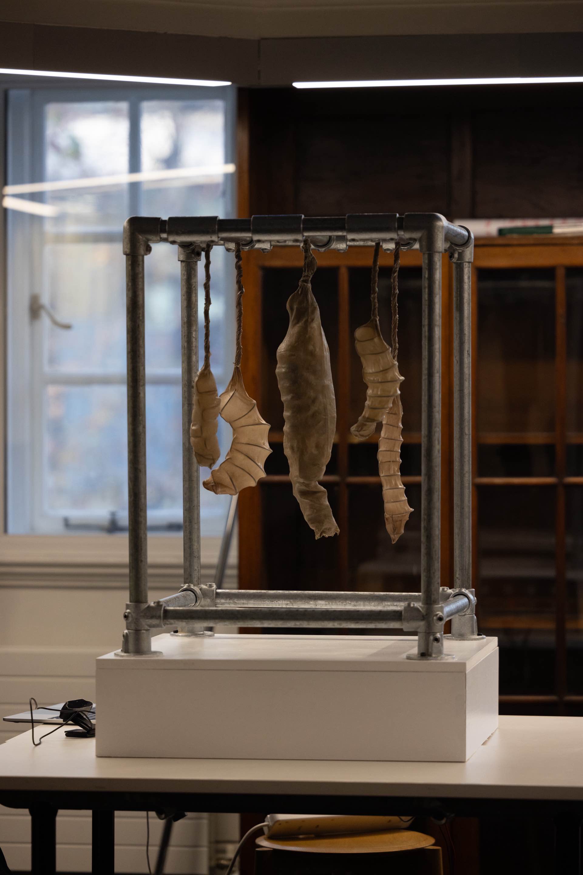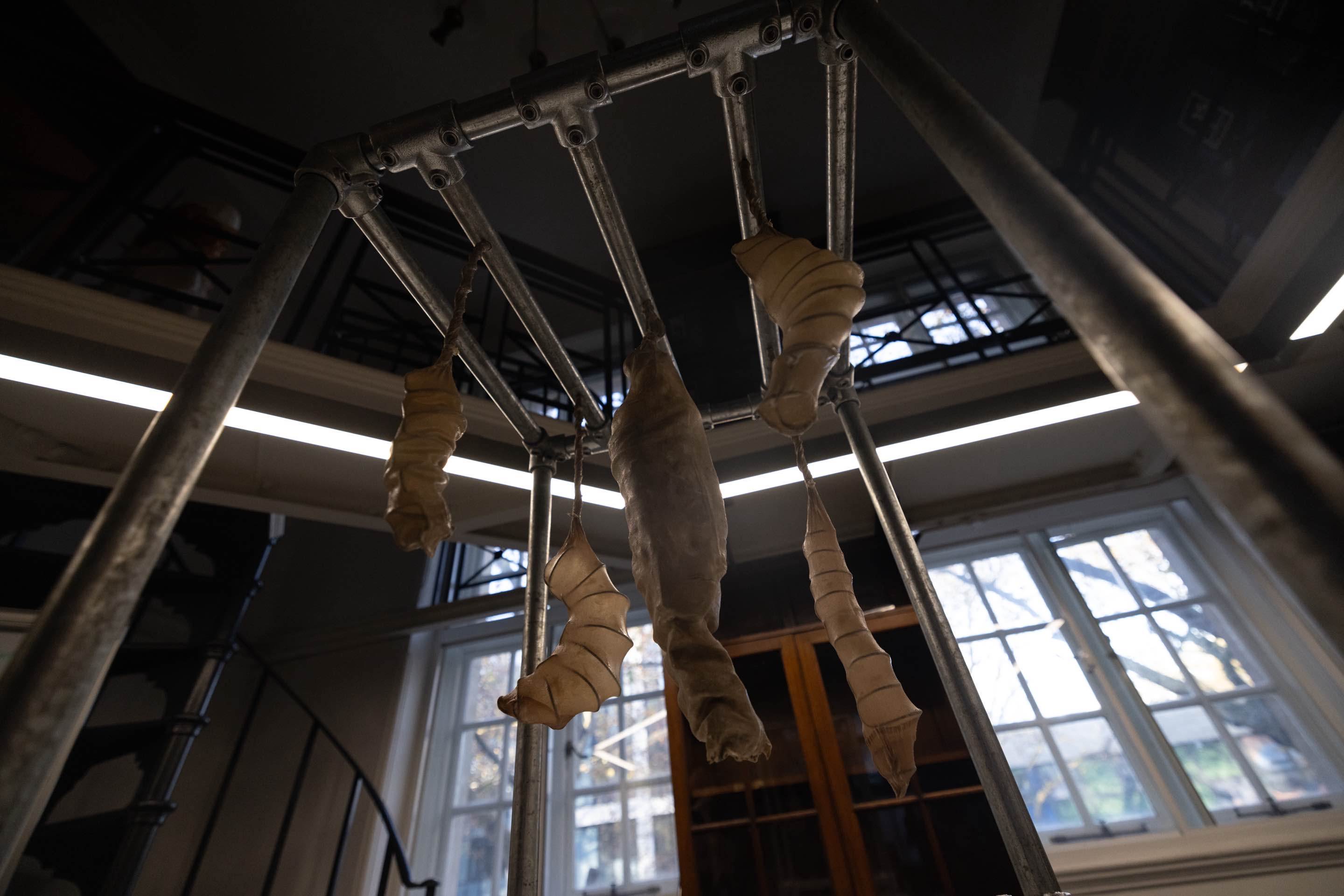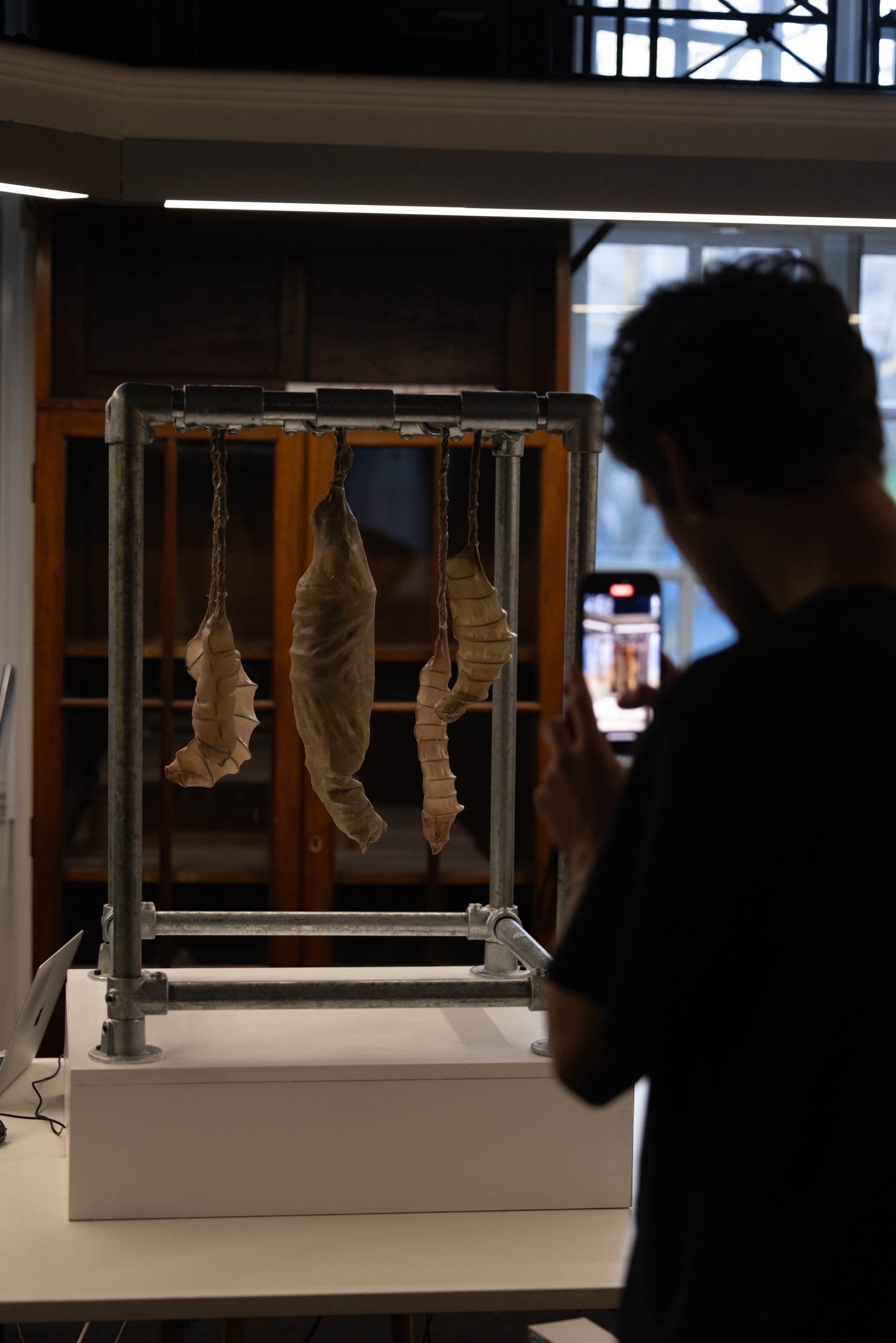 Chrysalis Machine symbolises a post-human entity, existing at the intersection of nature, technology, and humanity. Through gesture recognition, viewers can influence the creature's movements, actively participating in itsmetamorphosis and the emergence of a hybrid form of life. Drawing from ideas that challenge anthropocentrism, the work becomes a representation of the dissolution of boundaries between culture, nature, and technology.