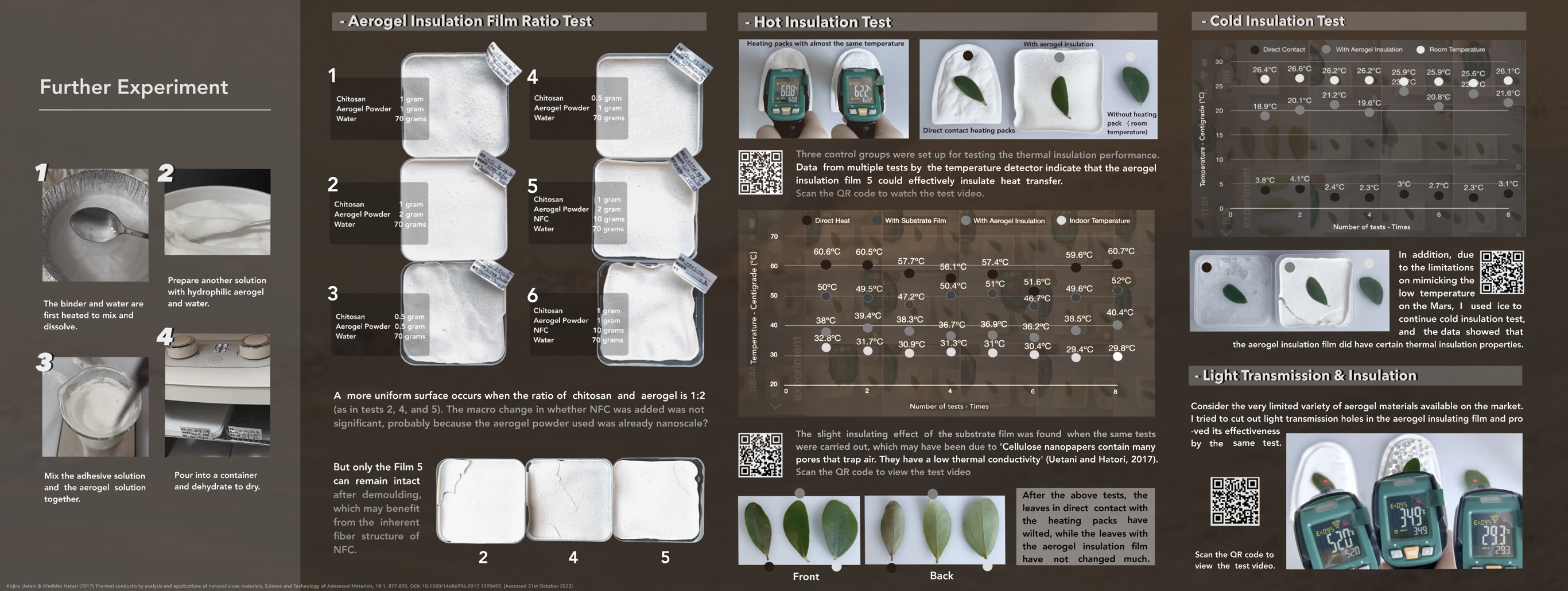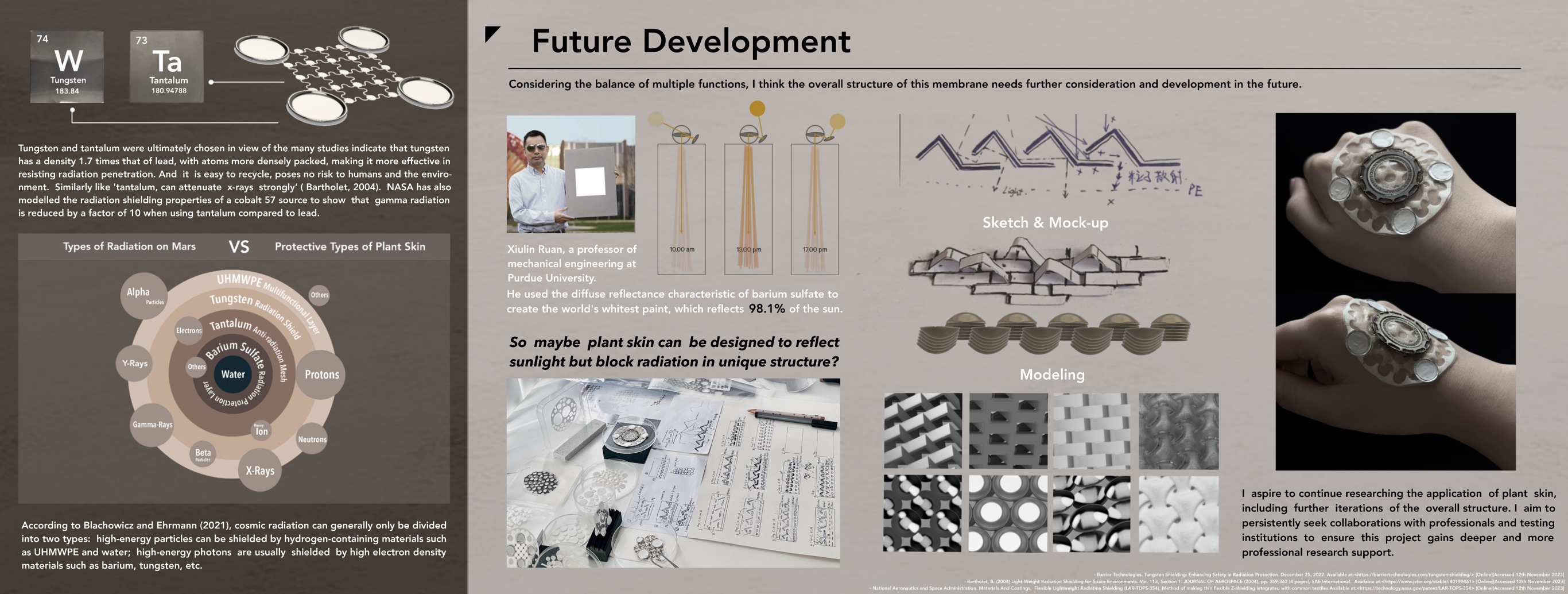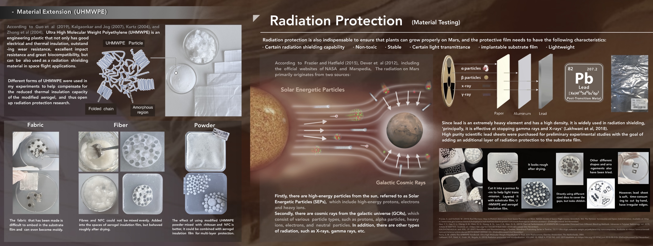 This project focuses on developing a lightweight, multilayered plant protective membrane designed to support interstellar immigrants by enabling plants to adapt to the Martian environment while providing multiple protective functions. The research explores material selection, hierarchical structural design, and performance evaluation. Experiments have been conducted using various materials, including nanofibrillated cellulose, chitosan, barium sulfate, tantalum, UHMWPE, and aerogels, assessing different combinations and layering structures to optimize transparency, moisture retention, thermal insulation, radiation shielding, and physical protection.